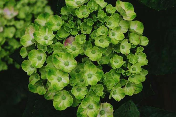 魔幻海洋花型球狀明顯,花瓣有鋸齒,夢幻效果強(qiáng),花色能根據(jù)土壤pH值變化,而且花色初期和后會出現(xiàn)特別的翡翠色,越到后期越明顯。