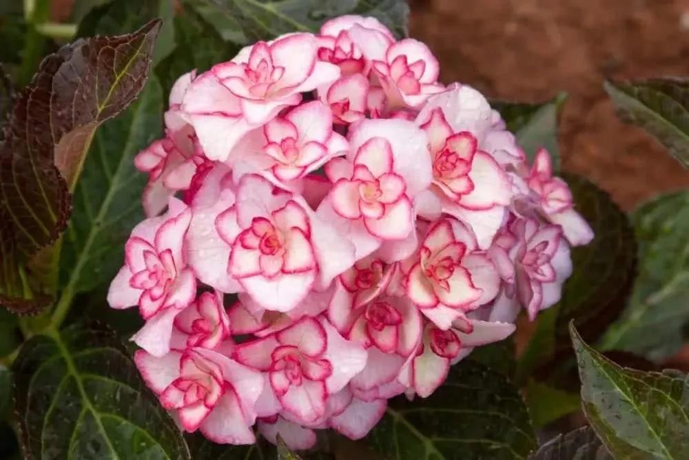 花手鞠是一款重瓣型繡球,因其形似手鞠球而得名,它們開出的花球很大,顏色也是可藍(lán)可粉,堿性條件下花開粉紅色,酸性條件下花開藍(lán)色,色澤極富變化,美麗異常。